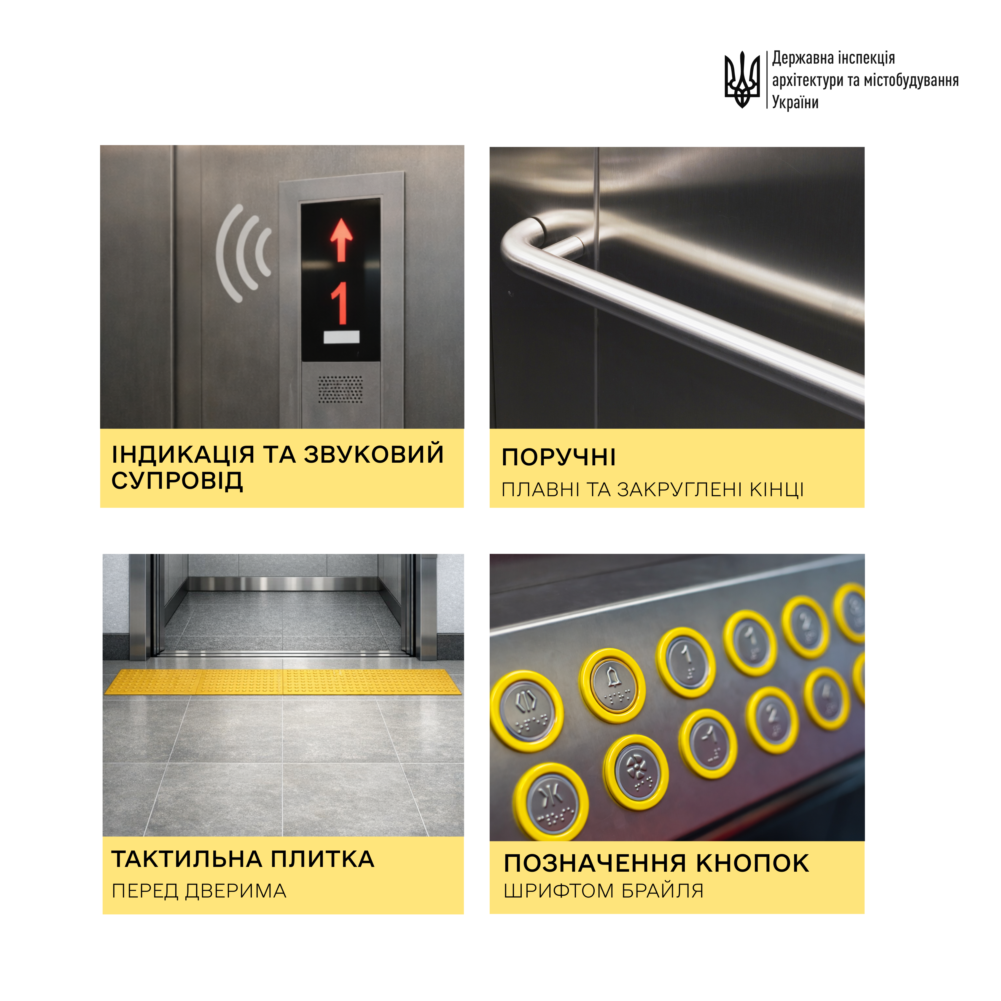 Біля дверей на кожному поверсі — тактильні таблички з Брайлем.