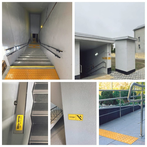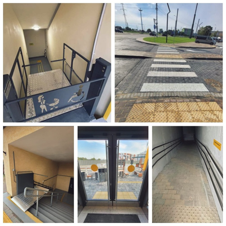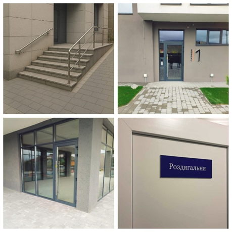 Порушення: на об’єкті немає контрастних покажчиків, попереджувальних смуг, тактильної плитки перед сходовими маршами та пандусами, а також відсутнє дублювання інформації для людей із порушеннями слуху та зору.