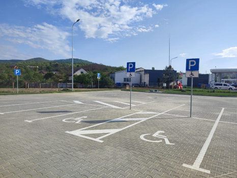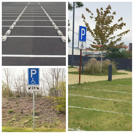 Порушення: пристосовано менш як 10% таких паркомісць та/або вони не позначені піктограмою.