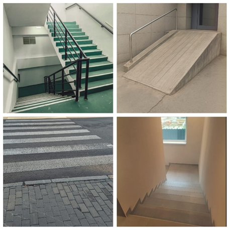 Нижче наведені та проілюстровані поширені порушення та приклади правильного облаштування елементів інклюзивності в будівлях і спорудах:
